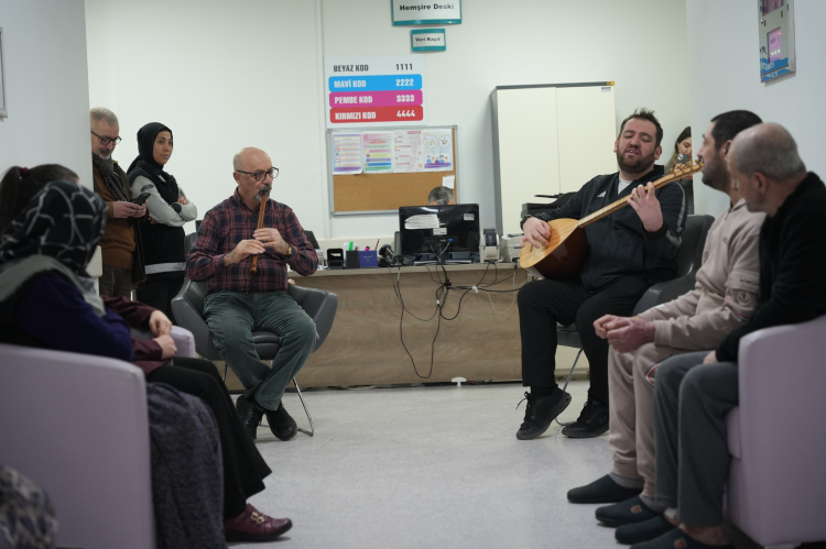 Yenişehir Devlet Hastanesi’nin palyatif servisinde uzun süredir tedavi gören hastaların motivasyonunu artırmak ve onlara moral aşılamak amacıyla özel bir etkinlik gerçekleştirildi. Yenişehir Belediyesi Türk Halk Müziği Korosu Şefi Kemal Kamalı, bağlama eğitmeni Selçuk Oruç ve ney eğitmeni Veli Kenan Şimşek’in sahne aldığı programda, Türk müziğinin en seçkin eserleri seslendirildi. Neyin huzur veren tınısı ve bağlamanın içten melodileriyle buluşan hastalar, tedavi süreçlerine kısa bir müzik molası verdi.