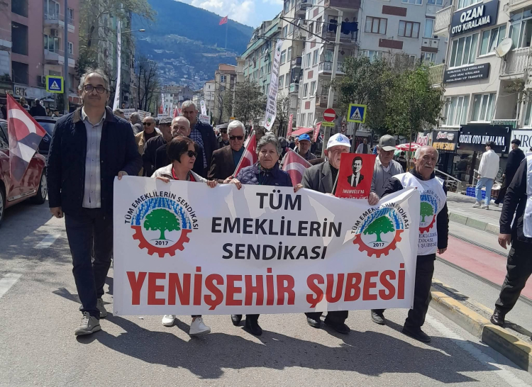 Mitinge, Tüm Emeklilerin Sendikası Yenişehir Şube Başkanı Kamettin Baştürk ve Şube Başkan Yardımcısı Erkan Erdem öncülüğünde yoğun katılım sağlandı.