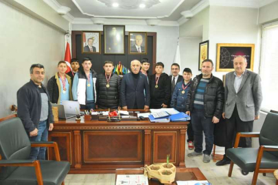 Öğrenciler ve Milli Eğitim Müdürlüğü yetkilileri daha sonra Belediye Başkanı Davut Aydın'ı makamında ziyaret ettiler. Başkan Aydın, dereceye giren öğrencileri ve emeği geçen öğretmenlerini başarılarından dolayı tebrik etti.