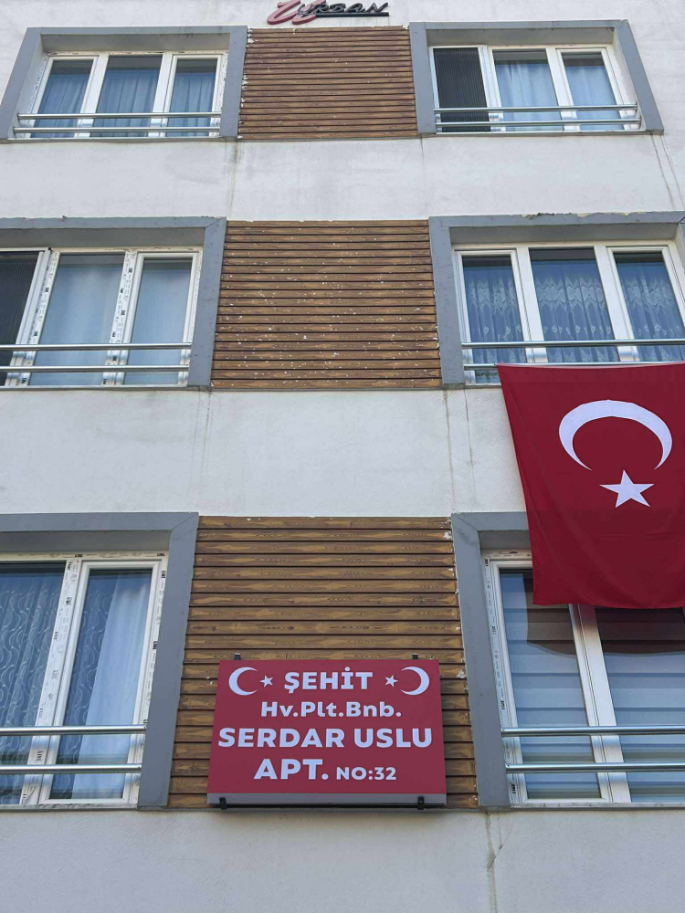 Kayseri’nin Talas ilçesi Harman Mahallesi Eyüp Sultan Caddesi No:32 adresinde ikamet ettiği apartmana, komşuları tarafından “Şehit Hv. Plt. Bnb. Serdar Uslu Apartmanı” ismi verildi. Binanın girişine asılan tabela, mahallede büyük bir anlam taşıdı.