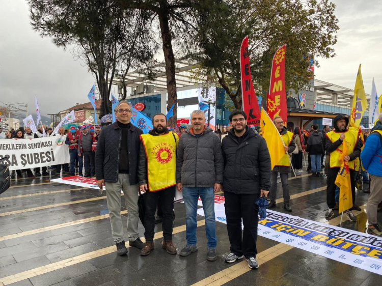 KESK tarafından düzenlenen “Yoksulluğa Karşı Mücadelede Birleşiyoruz – Halk İçin Bütçe, Demokratik Türkiye” mitingi, Bursa Şehreküstü Meydanı’nda yağmura rağmen geniş bir katılımla başladı.