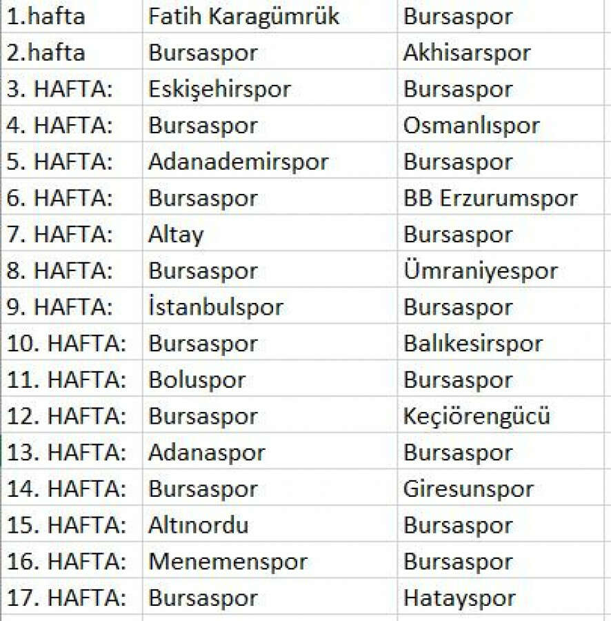 BURSASPOR'UN SEZON FİKSTÜRÜ: