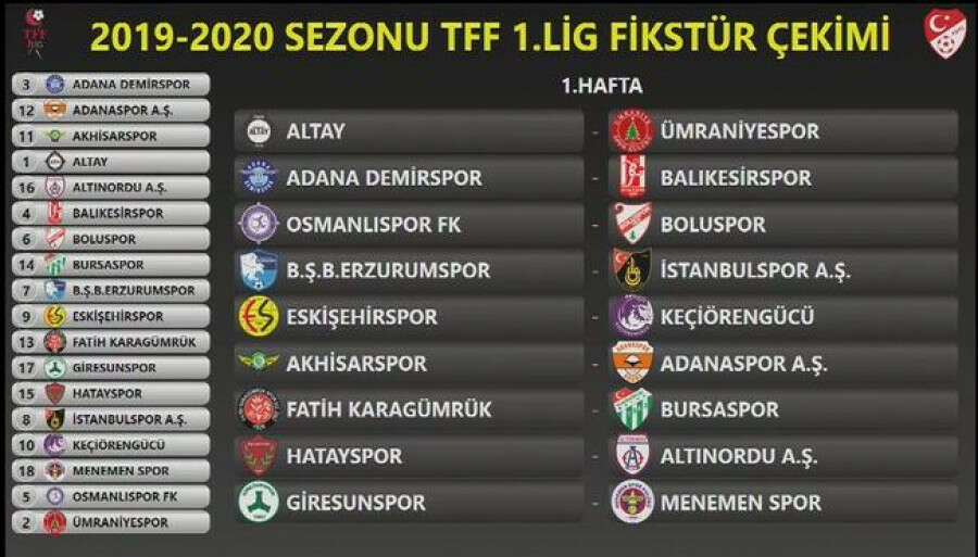 2019-2020 sezonu TFF 1. Lig fikstür çekimi TFF Hasan Doğan Milli Takımlar Kamp ve Eğitim Tesisleri Orhan Saka Salonu'nda gerçekleştirildi.